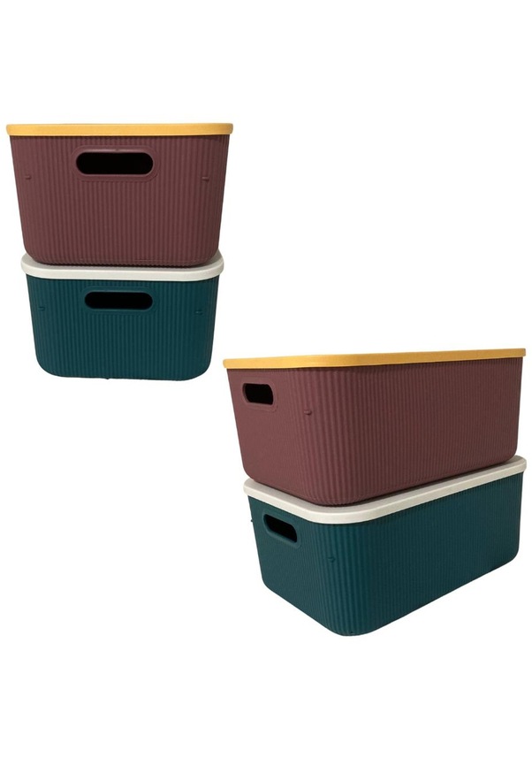 Boîte de rangement en plastique (3 tailles) – Marron/Vert