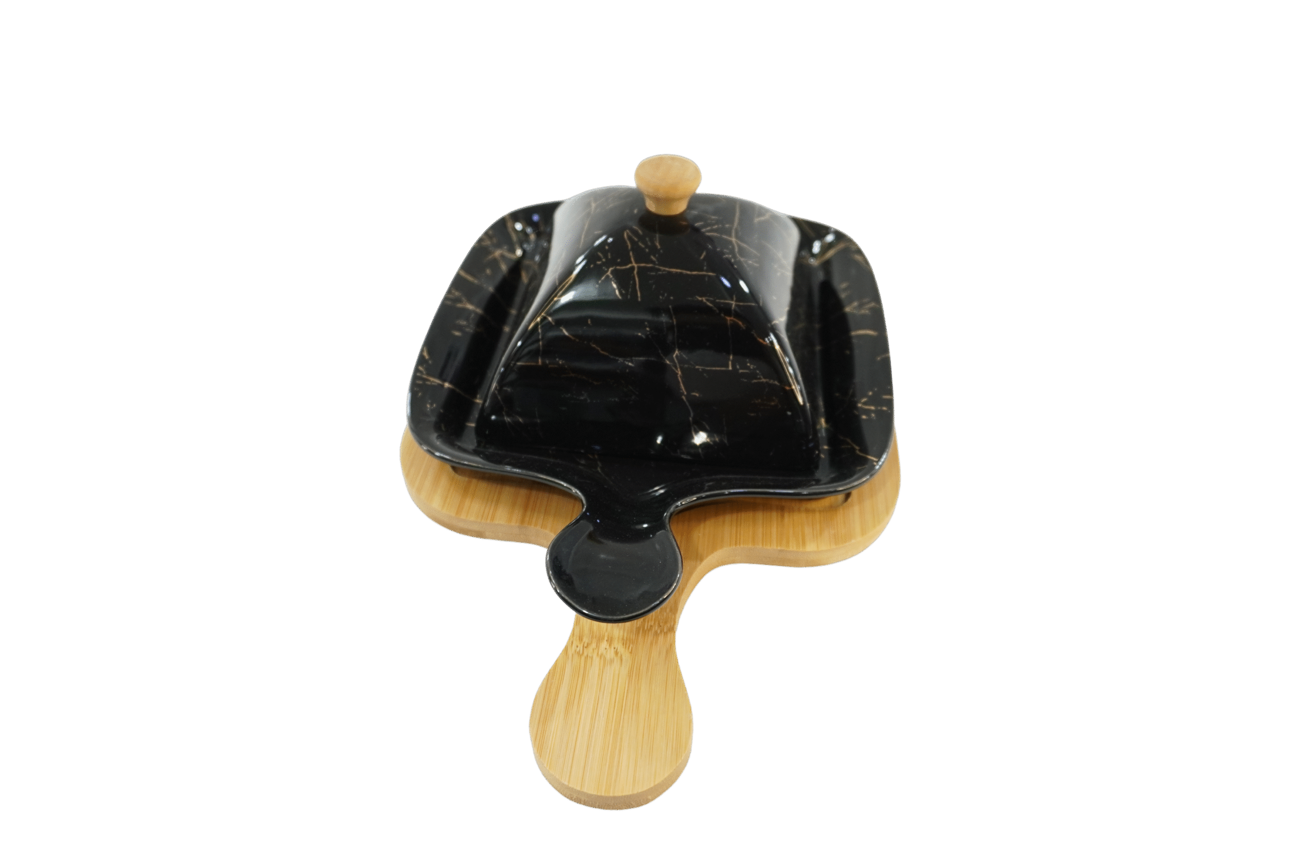 Un pot à fromage en céramique noir avec un couvercle assorti.