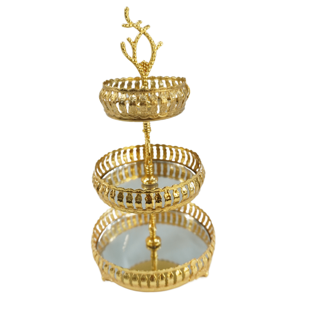présentoir à gâteaux doré