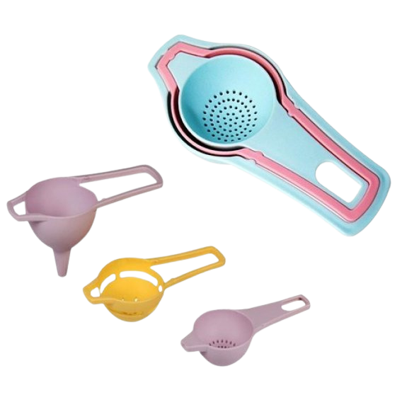 Set de 3 Mini Passoires à Œufs et Entonnoirs – Bleu + Rose